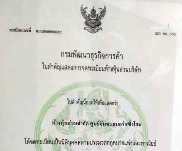 จันทราเนอร์สซิ่งโฮม ได้จดทะเบียนถูกต้องตามกฎหมายมีหนังสือรับรองจากกรมพัฒนาธุรกิจการค้าทะเบียนเลขที่ 0113560000687