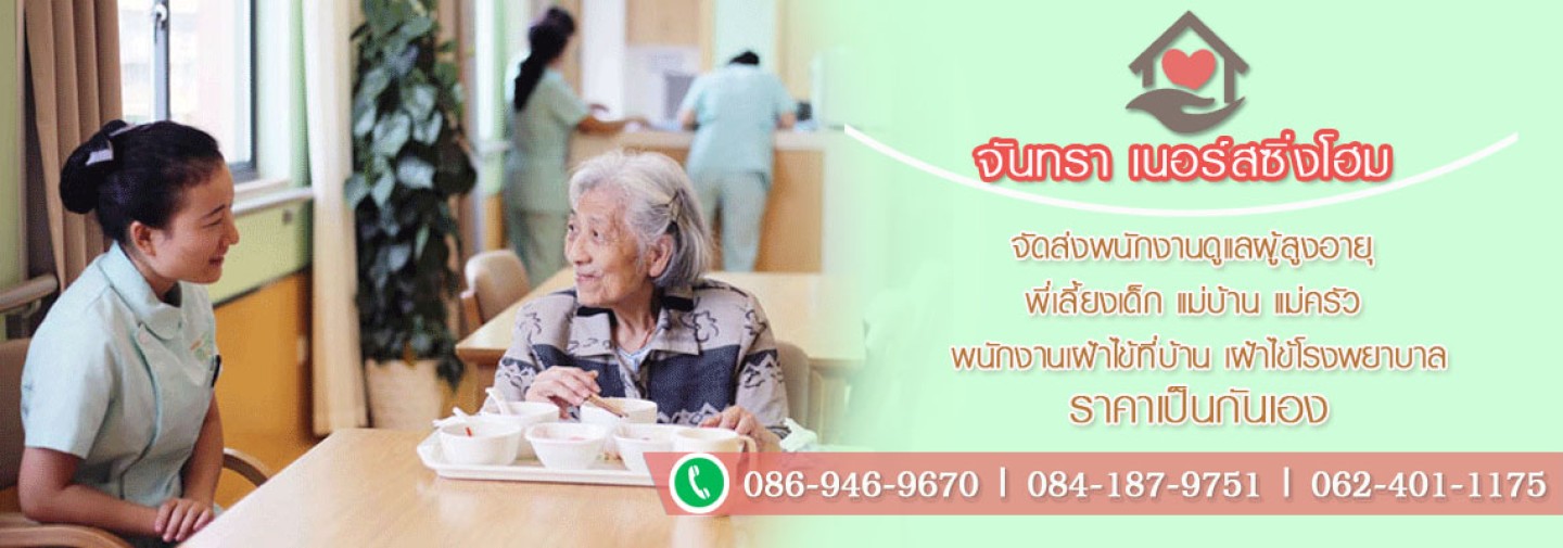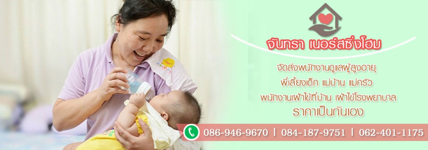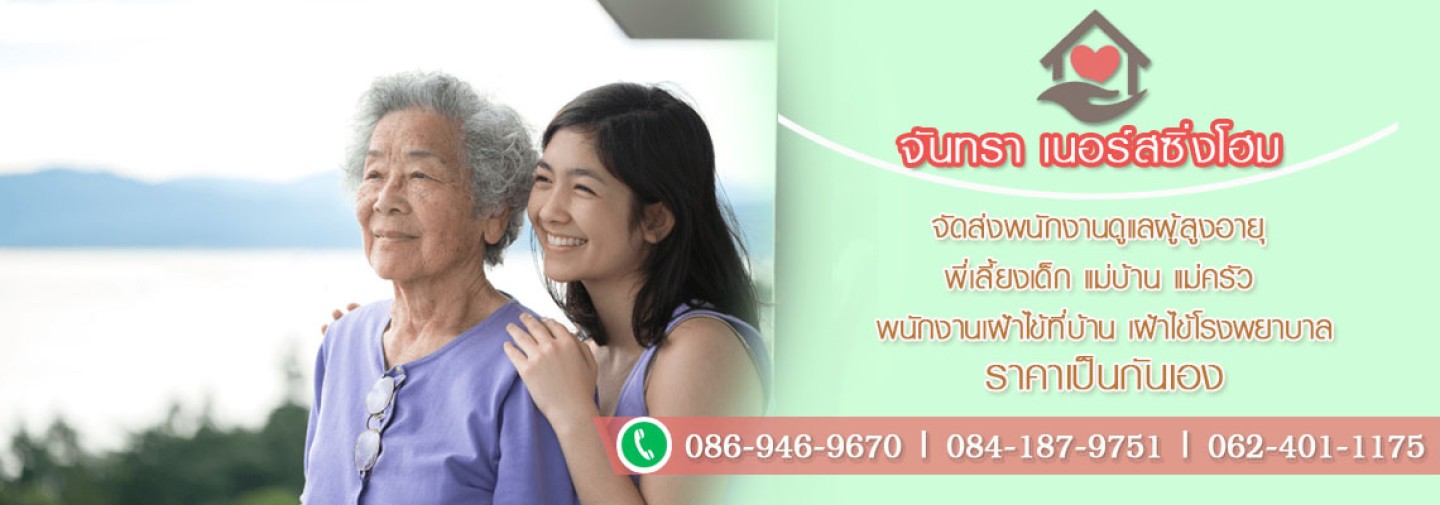 จันทราเนอร์สซิ่งโฮม ศูนย์บริการจัดส่ง พนักงานดูแลผู้สูงอายุ ดูแลผู้ป่วยพักฟื้น เฝ้าไข้ประจำบ้าน เฝ้าไข้โรงพยาบาล พนักงานทำความสะอาดบ้าน อาคารสำนักงานโรงงาน พี่เลี้ยงเด็ก ดูแลคนชรา ทีมของเราผ่านการอบรมอย่างดี มีประสบการณ์ สามารถดูแลแทนท่านได้ แบ่งเบาภาระ เรายินดีดูแลแทนท่าน วางใจในบริการของเรา ประสบการณ์กว่า 15 ปี